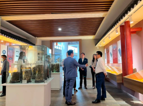 萬谷集團一行在集團主席、文旅部的引領下先后參觀了養(yǎng)生健康館、彭氏名人館、廣東南藥館、名貴藥材館、衍生館、生產車間等。期間與企業(yè)負責人深入了解了衍生健康醫(yī)藥產業(yè)園的發(fā)展歷程、產品研發(fā)、生產銷售、研學旅游等企業(yè)概況。經過現場考察、溝通交流后萬谷集團對衍生健康產業(yè)園的高標準的建設、高效能的運營給予了高度評價和贊賞。